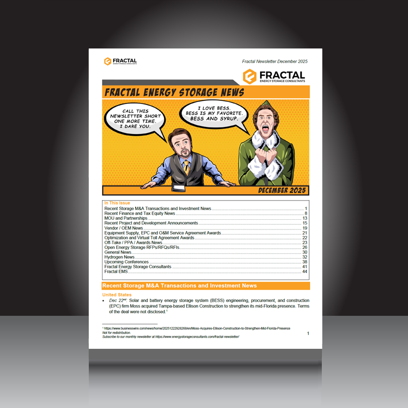 Fractal publishes our monthly newsletter highlighting key topics of the energy storage industry. The newsletter is delivered at the end of each month and covers global energy storage news for the prior month.