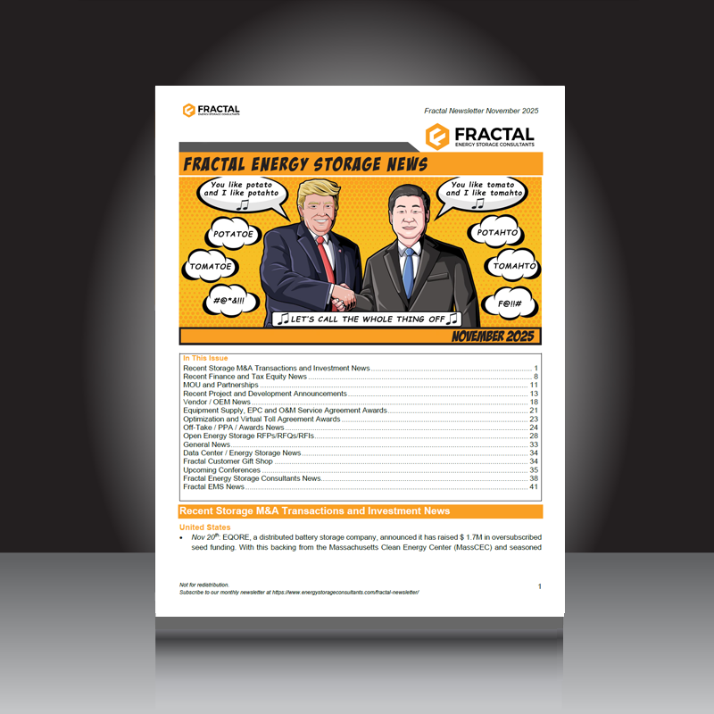 Fractal publishes our monthly newsletter highlighting key topics of the energy storage industry. The newsletter is delivered at the end of each month and covers global energy storage news for the prior month.